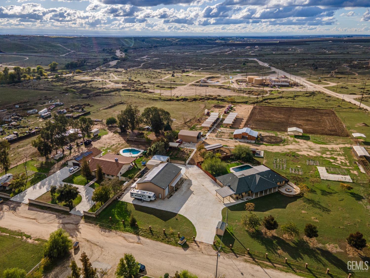 Horse property near Poso Creek w/ 2 separate, adjacent lots totaling 10+ acres (7 acres have pipe fencing). Home is 2,482 sf w/ 4 bed, 3 bath, large family room, kitchen w/ new stovetop, dishwasher and microwave. Monji designed backyard has beautiful trees/shrubs plus sparkling pool, spacious covered patio and built-in BBQ. Front yard has a firepit surrounded by a concrete lounge area w/rock retaining wall. Property includes huge shop with 3 bed, 2 bath, recently updated mother-in-law quarters, plus RV shop and garage. Many areas of the home and MIL have been freshly painted. Facilities feature 4-stall barn, hay barn, round pen, large arena, 10 horse stalls w/ covers, 3 turn out pastures w/ 5 more covers, sheep/goat pen with fencing, 5 tack buildings w/ 10 doors, a large feed tack room, ranch restroom, large owner's tack room, plus auto shop with a BendPack lift and more. Water is supplied by a shared well and a new water softening system was installed in 2025.